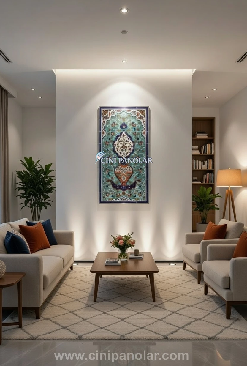 Dekoratif İznik çini duvar tabloları, özellikle sade ve geniş duvar alanlarında kullanıldığında mekâna estetik bir karakter kazandırır. Geleneksel Türk sanatını modern iç mekân tasarımlarıyla buluşturan bu özel tasarım; salon, antre, ofis ve otel gibi birçok farklı mekânda dekoratif bir vurgu oluşturur.