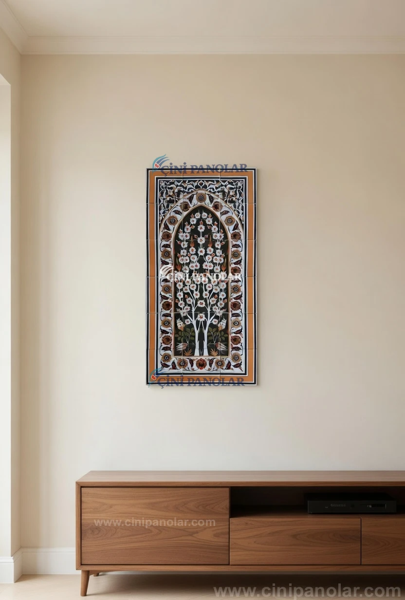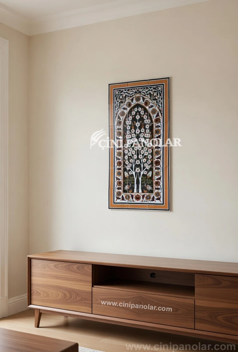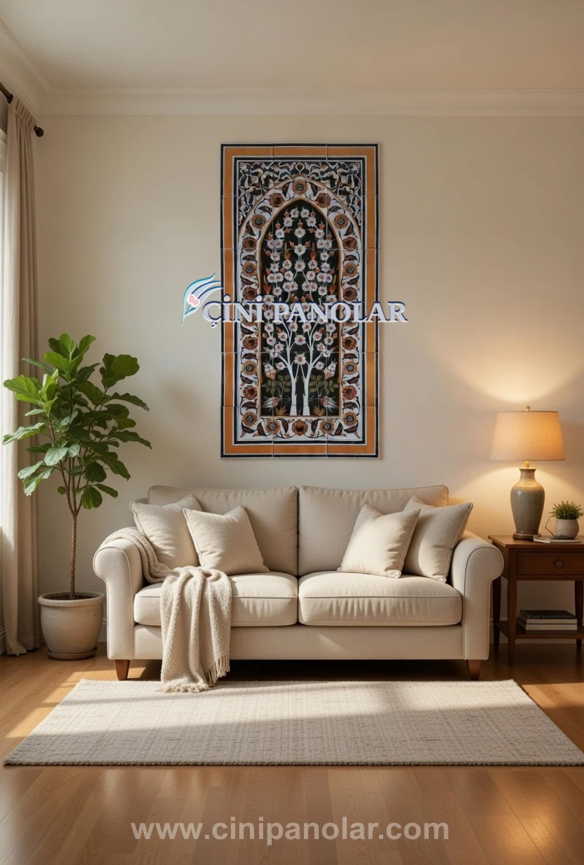 Özellikle büyük duvar alanlarında kullanıldığında çini pano, mekâna derinlik ve sanatsal bir atmosfer kazandırır.