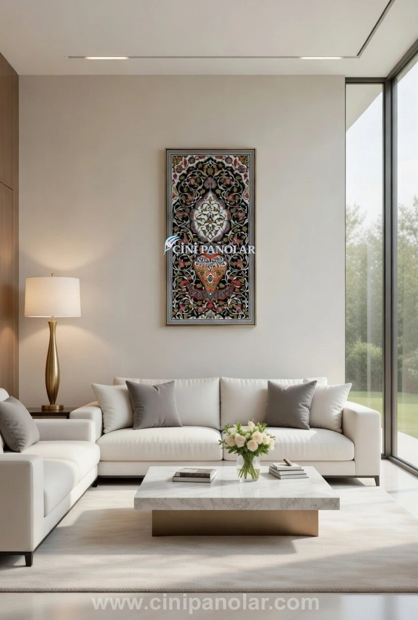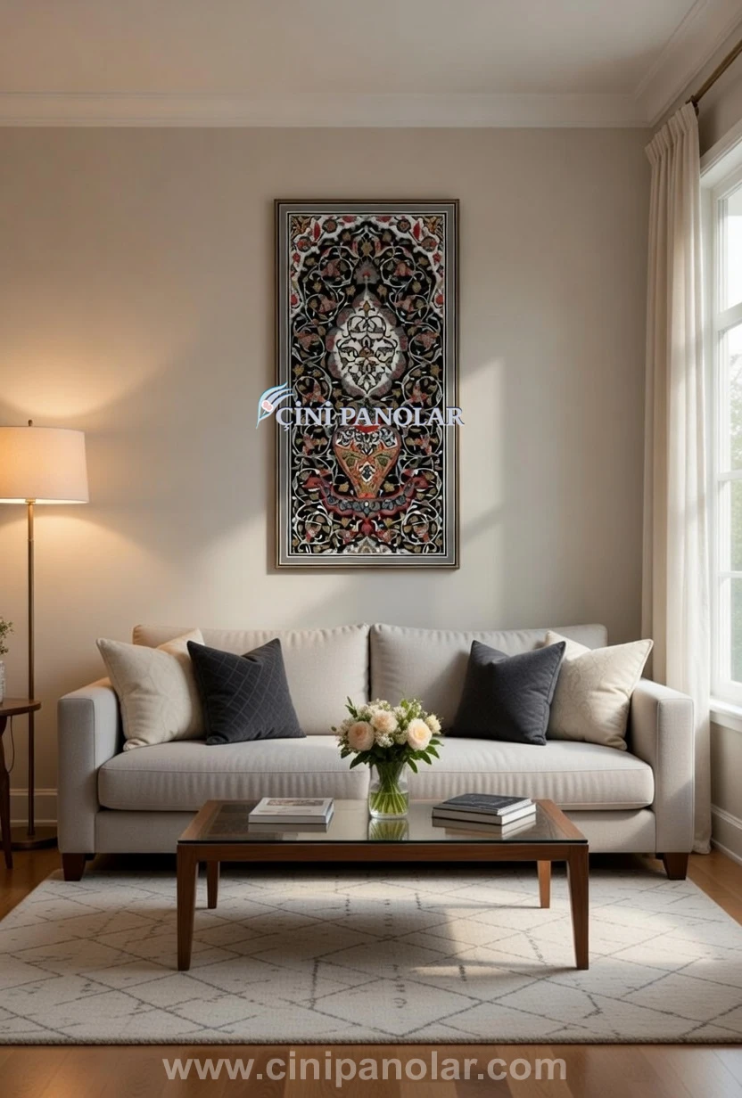 Dekoratif İznik çini duvar tabloları, özellikle geniş ve sade duvar alanlarında kullanıldığında mekâna sanatsal bir atmosfer kazandırır. Geleneksel Türk sanatını modern dekorasyon ile buluşturan bu tasarım; salon, antre, ofis, otel ve restoran gibi birçok farklı mekânda tercih edilen şık bir dekorasyon unsurudur.